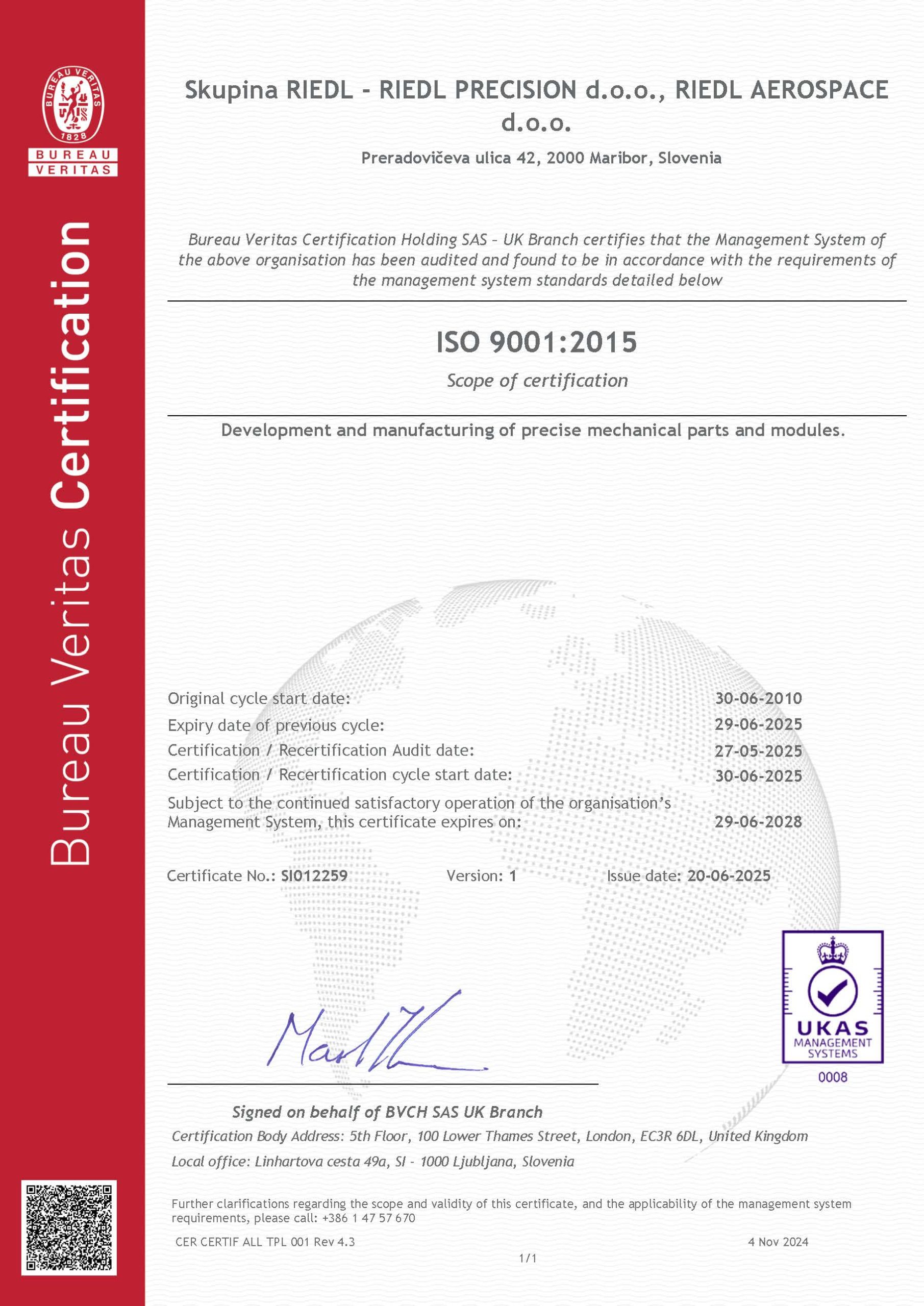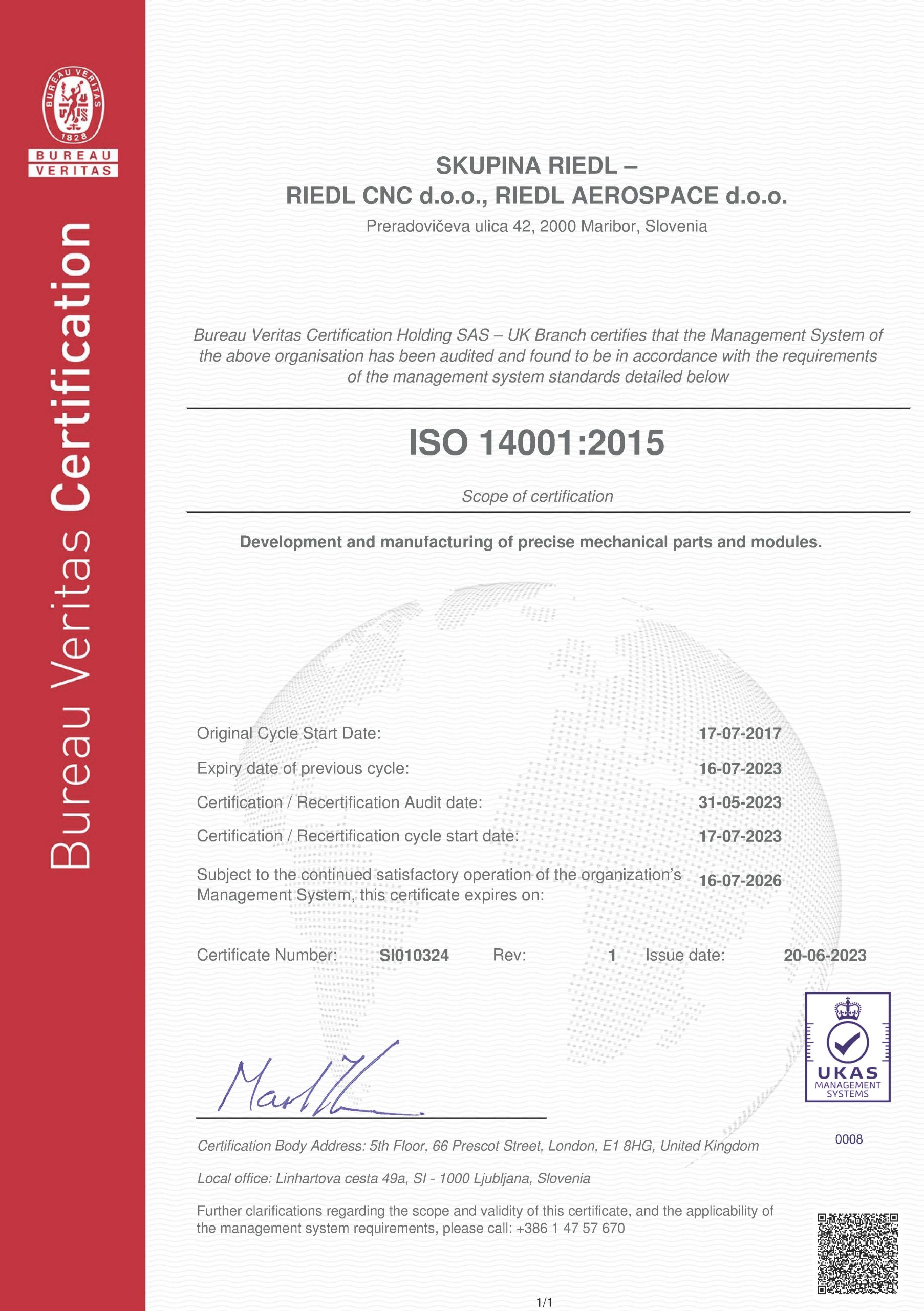 The RIEDL GROUP has adopted the Quality and environmental management policy, which conforms with the purpose and the context of the organization and its strategic goals. It is an integral and indivisible part of the commercial policy and company's vision, and it is based on the systematic quality development, constant improvement on all levels of operation, and continuous care for the customer satisfaction and environment friendly approach.